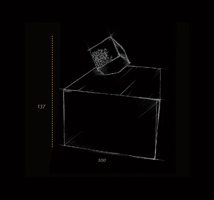 « It is about an improbable cube, a structure that exists but is dematerialized, oscillating between intricate complexity and elementary simplicity.» Ilyas Meftah